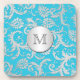 Monogramm-Türkis-Silber-Damast-Untersetzer-Set (6) Untersetzer