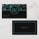 Monogramm-Türkis-u. schwarze Perlen-Blumenkarte Visitenkarte