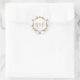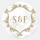 Elegante Monogramm Aufkleber mit goldenem Schriftart und weißem Marmorhintergrund.