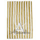 Weißer und goldfarbener, gestreifter Monogram-Geschenkbeutel. Diese White and Gold Foil Stripe Geschenktasche kann so angepasst werden, dass sie Ihren Anfangs- und Vornamen enthält. Der White and Gold Foil Streifen ist das ideale Geschenk für einen Geburtstag, Brautparty oder Junggeselinnen-Abschied.
