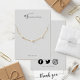 Einfache und moderne Halskette- oder Armband-Display-Karte mit bearbeitbarem Text und zwei bedruckten Trennmarkierungen für Sie, um Ihre Halskette oder Ihr Armband zu platzieren. Sie können das elegante Monogramm und Ihre eigenen Social Media-Details ändern. Zeigen Sie Ihre Marke ab und behielt Sie Ihre Produkte, organisiert und geschützt mit dieser einfachen und modernen Halsketten-Display-Inhaber mit bearbeitbarem Text für Ihre Geschäftsdetails, Name oder persönliche Monogramm, und zwei gedruckte Marker für Ihre Halskette oder Armband. Perfekt für den Einsatz in Ihrem Schaufenster, im Geschäft oder in Social Media. Mit der weißen Hintergrundfarbe kann sich Ihr Schmuck wirklich von Ihren einzigartigen Displays in Ihrem Schaufenster abheben, zum Fotografieren von Produkten oder zum angenehmen Verpacken und Schutz Ihrer Kundenbestellungen. Wenn Sie möchten, dass irgendeines der Social-Media-Icons geändert wird, lass mir bitte Bescheid.