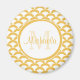 Geben Sie Ihrem Stil eine moderne Kante mit diesem grafischen, gelb-weiß-fischskalierten, Jakobsmuster runden Magneten, die Sie personalisieren können, indem Sie Ihren Namen und Monogramm Initial. Dieses trendige geometrische Muschel Muster ist fett und dennoch stilvoll.