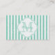 Fügen Sie Mode und Flair zu Ihrem bevorzugten Beruf mit diesen niedlichen Minz grün und weiß gestressten bemalten Streifen Visitenkarten. Dieses niedliche und stilvolle pastellgrüne Design mit dem Namen und der Monogramm-Initiale der modischen jungen Geschäftsfrau.