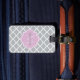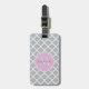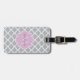 Ein gemusterter Gepäckanhänger mit grauem, gürtelndem Quarrefolie, mit einem geschmolzenen Abzeichen in einem rosa Lavendel, den Sie personalisieren können, indem Sie Ihren Namen und mit Monogramm Initialen hinzufügen. Dies ist Teil der Harbour Mist Gray und Lavender Pink Spring Collection.