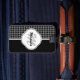Ein modernes, schwarz-weißes Gepäckanhänger mit einem Hahnentrittmuster in senkrechten Streifen. Dieses zeitgenössische Design in stylischen Grautönen personalisieren, indem man den Namen und die Monogramm-Initialen der modischen jungen Frau hinzufügt.