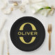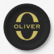 Monogramm und Name Schwarz und Gold Personalisiert Pappteller