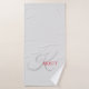 Schöne Monogramm und personalisierte Namenskombination auf einem hochwertigen Polyester- und Baumwollbadehandtuch. Verzierte große graue Initial mit klassischem Schriftart Vollname in rot auf hellgrauem Hintergrund. Design positioniert auf unter 1/3 des Handtuches für ästhetische Anziehungskraft. Die perfekte Ergänzung zur Badezimmereinrichtung. Ein idealer Geburtstag, Muttertag oder Hauswärmeschenk.