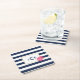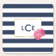 Monogramm-Untersetzer für Navy Strip und Pink Peon Rechteckiger Pappuntersetzer
