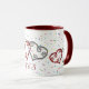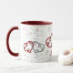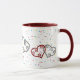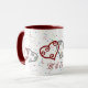 Es zeigt zwei verbundene Herzen, eins im Rot und eins im Silber. Ändern Sie das Monogramm zu ihren Initialen.