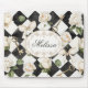 Monogramm Vintage Rose Blume Schwarz-weiß Diamond Mousepad
