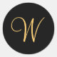 Monogramm W, goldfarbene Anfangsfarben W auf schwa Runder Aufkleber