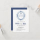 Persönlich gestalten Sie Ihre Hochzeitseinladung mit einem eleganten Blue Wappen mit den ersten beiden Briefen der Braut und der Groom's Namen, Vintage Hochzeitseinladung, floral Vintage Kraft Hochzeitsfeier Einladung, sehr elegant und ohne Zeit, die für eine lange Zeit elegant sein wird. Leicht zu nutzen und zu bearbeiten Wide Space für Ihre klassische klassische altenglische Typografie