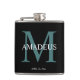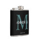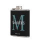 Elegante Mit Monogramm Trauzeugen Black Flask Ein wunderbares Dankeschön für einen Trauzeuge. Schlichte, elegante, schwarze Hülle mit einem Monogramm-Vornamen und einem großen Turquise-Vor- oder Nachnamen dahinter.