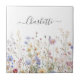 Fügen Sie Ihrem Zuhause rustikale florale und natürliche Vibes hinzu mit unserem Monogramm Wasserfarbe Rustikales Schönes Wildblumenfeld Keramikfliese. Mit Wasserfarben-Illustration eines farbenfrohen Wildblumengartens und editierbarem Text in einer kalligrafischen Schriftart, die personalisiert werden kann. Geeignet als Geschenk zur Einweihung für Wildblumenliebhaber.
