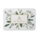 Wir stellen unsere Monogramm-Wasserfarbe-Tropische Grünblätter-Badmatte vor. Sie zeigt eine Wasserfarben-Illustration einer grünen Blumenbouquet-Anordnung mit anpassbarem Monogramm in der Mitte in Gold. Geeignet als Geschenk zum Einzug oder für Naturliebhaber.