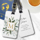 Wir stellen unser Monogramm Wasserfarbe Tropische Grüne Blätter Gepäckanhänger vor. Mit Wasserfarben-Illustration einer grünen Blumenstraußanordnung mit anpassbarem Monogramm in der Mitte in Goldfarbe. Geeignet als Geschenk für Naturliebhaber