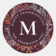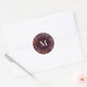 Unser moderner und eleganter Wine Berries & Green Blätter Monogram Dark Classic Round Sticker präsentiert farbenfrohe Herbstlaub in den Farbtönen Rot, Blau, Salbei und aquamarin Grün, die von reifen lila Beeren hervorgehoben werden, alles auf einem tiefen burgundischen Hintergrund. Alle Texte im Aufkleber können aktualisiert werden, um ein einzigartiges Mailing- oder Geschenkverpackungszubehör zu erstellen.