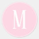 Klassischer Rundaufkleber mit weißem Monogramm auf hellrosa Hintergrund. Passen Sie den Aufkleber mit Ihren eigenen Initialen oder Initialen, Hintergrundfarbe, unter anderem an.