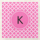 Monogramm Weiß auf Hot Pink Quatrefolienmuster Glasuntersetzer