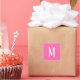 Ein quadratischer Aufkleber mit weißem Monogramm auf rosa Untergrund. Passen Sie den Aufkleber mit Ihren eigenen Initialen oder Initialen, Hintergrundfarbe, unter anderem an.