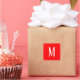 Ein quadratischer Aufkleber mit weißem Monogramm auf rotem Hintergrund. Passen Sie den Aufkleber mit Ihren eigenen Initialen oder Initialen, Hintergrundfarbe, unter anderem an.