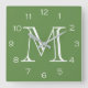 Monogramm weiße Zahlen auf grünem Wccn Quadratische Wanduhr