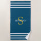 Monogramm/Weißer Name Weißer Streifen, Ozeanblau Strandtuch