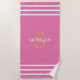 Monogramm/Weißer Name Weißer Streifen, rosa Strandtuch