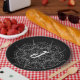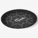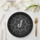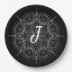 Monogramm weißes Spitzen auf der schwarzen Papierp Pappteller