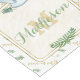 Dieses Design verfügt über ein Aquarellmonogramm und Namen auf jedem Ende, mit dem passenden Frieden Taube tragen einen Olivenzweig, und der Hintergrund ist ein Muster der goldenen Aquarelltypografie "Weltfrieden" mit passenden kleinen Olivenzweigen. Es ist die perfekte Touch für Ihren Urlaub am Buffet!