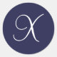 Monogramm X, weiß auf Navy Blue, Runder Aufkleber
