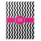Gewundenes Notizbuch der modernen und trendy mit Monogramm Zickzack Streifen kennzeichnet vertikale Zickzack Schwarzweiss-Streifen und eine rosa Akzentgrenze mit einem runden rosa Akzentrahmen für Ihre Initiale. Zeigen Sie Ihre Persönlichkeit mit diesem gewundenen Notizbuch des Spaßes und des trendy Zickzack Streifens. Vervollkommnen Sie für eine Zeitschrift und Anmerkungen, Arbeit, Schule und Zuhause nehmen. Macht ein großes Geschenk für jede Anlässe. Klicken Sie "besonders anfertigen es!" an knöpfen Sie, um die Textgröße, die Textfarbe, die Schriftartart und mehr zu ändern!