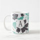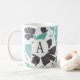 Eine trendige, monogrammatikalische Kaffeemaschine mit grauer und minter Blumenmuster. Eine stilvolle Tasse, die Sie persönlich gestalten können! Dieses Design hat ein schönes Blumenmuster. Passen Sie die Kaffeemaschine mit Ihrer ersten Tasse an. Design von Jenn's Emporium.
