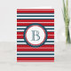 Nautisches Design mit Monogramm-Dekoration in runder Form mit Seilabbildungen auf blau, rot und weiß gestreiftem Hintergrund