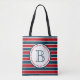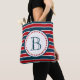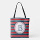 Nautisches Design mit Monogramm-Dekoration in runder Form mit Sternen auf blau, rot und weiß gestreiftem Hintergrund