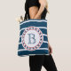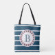 Nautisches Design mit Monogramm-Dekoration in runder Form auf blau-weiß gestreiftem Hintergrund