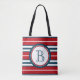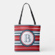 Nautisches Design mit Monogramm-Dekoration in runder Form mit Seilabbildungen auf blau, rot und weiß gestreiftem Hintergrund