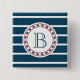 Nautisches Design mit Monogramm-Dekoration in runder Form auf blau-weiß gestreiftem Hintergrund