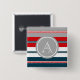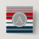 Nautisches Design mit Monogramm-Dekoration in runder Form auf blau, weiß, rot und grau gestreiftem Hintergrund