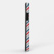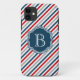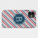 Nautisches Design mit Monogramm-Dekoration auf blau, weiß, rot und grau gestreiftem Hintergrund