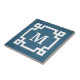 Monogramm-Design mit griechischer Grenzdekoration auf grunblauem Hintergrund