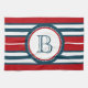 Nautisches Design mit Monogramm-Dekoration in runder Form mit Seilabbildungen auf blau, rot und weiß gestreiftem Hintergrund