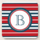 Nautisches Design mit Monogramm-Dekoration in runder Form mit Seilabbildungen auf blau, rot und weiß gestreiftem Hintergrund