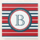Nautisches Design mit Monogramm-Dekoration in runder Form mit Seilabbildungen auf blau, rot und weiß gestreiftem Hintergrund