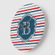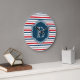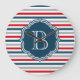 Nautisches Design mit Monogramm-Dekoration auf blau, weiß, rot und grau gestreiftem Hintergrund