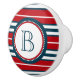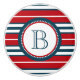 Nautisches Design mit Monogramm-Dekoration in runder Form mit Seilabbildungen auf blau, rot und weiß gestreiftem Hintergrund