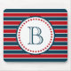 Nautisches Design mit Monogramm-Dekoration in runder Form mit Sternen auf blau, rot und weiß gestreiftem Hintergrund