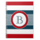 Nautisches Design mit Monogramm-Dekoration in runder Form auf blau, weiß und rot gestreiftem Hintergrund