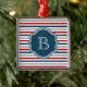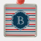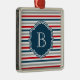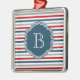 Nautisches Design mit Monogramm-Dekoration auf blau, weiß, rot und grau gestreiftem Hintergrund