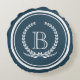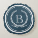 Monogramm-Design mit Laurel-Kranz-Dekoration in gestreifter, runder Form auf blauem Hintergrund